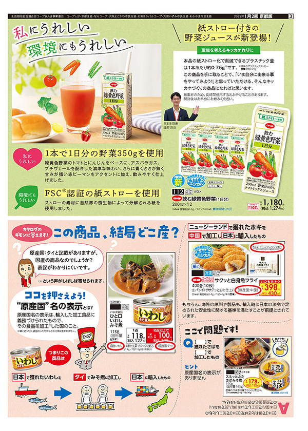 スーパーに陳列されているような有名商品からコープオリジナルの商品まで、